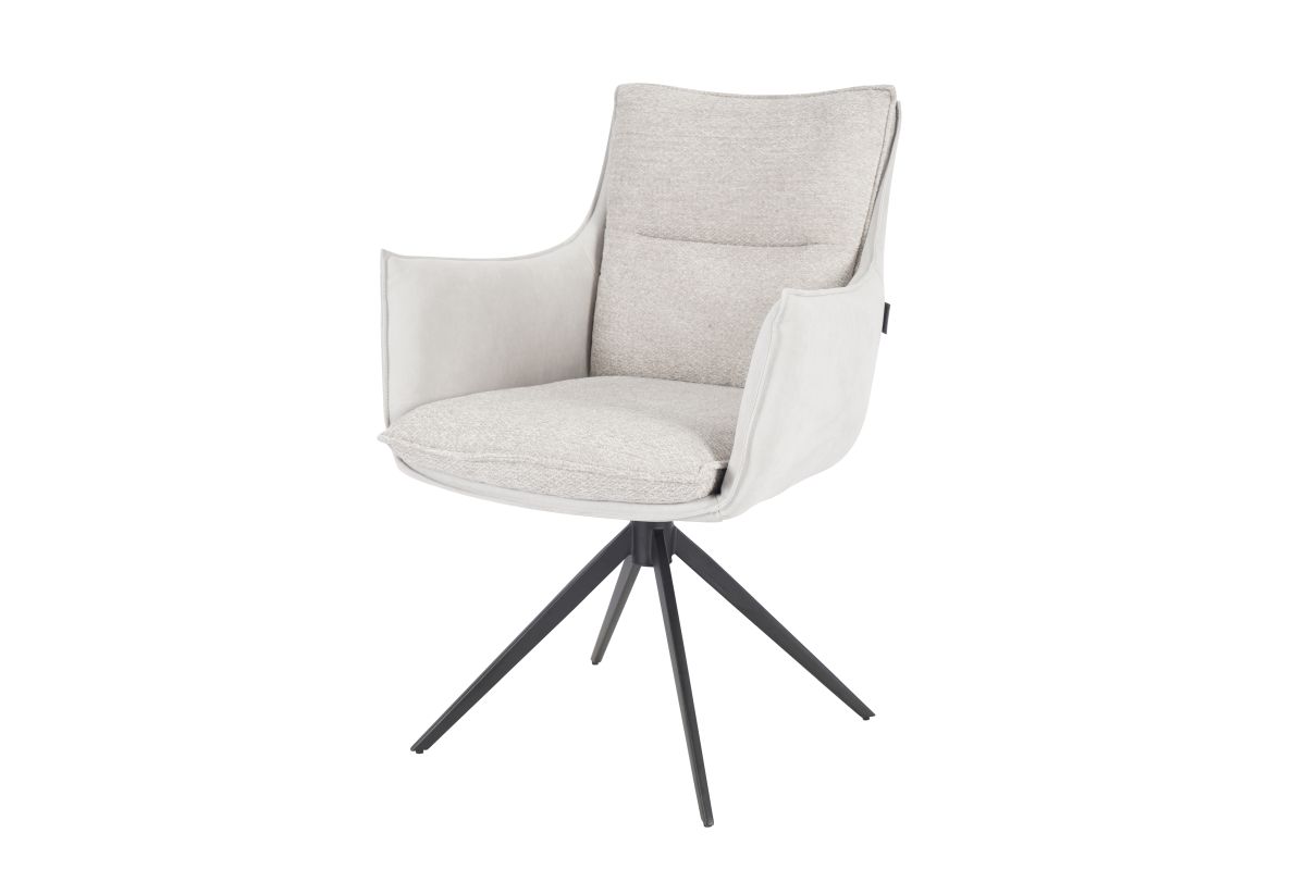 Stilvoller Sessel der durch den Stoffmix hervorsticht. Weiteres hat MANDY eine 360 Grad Drehfunktion.