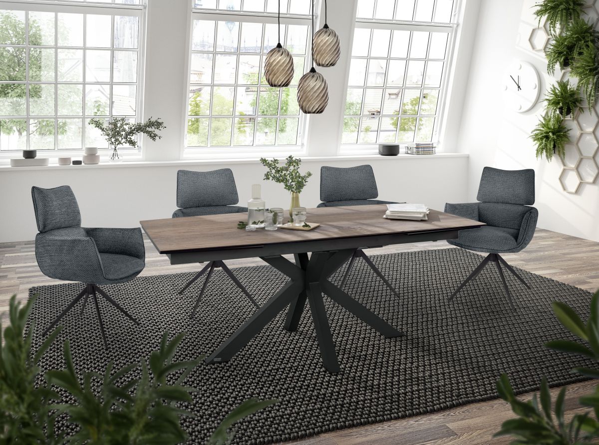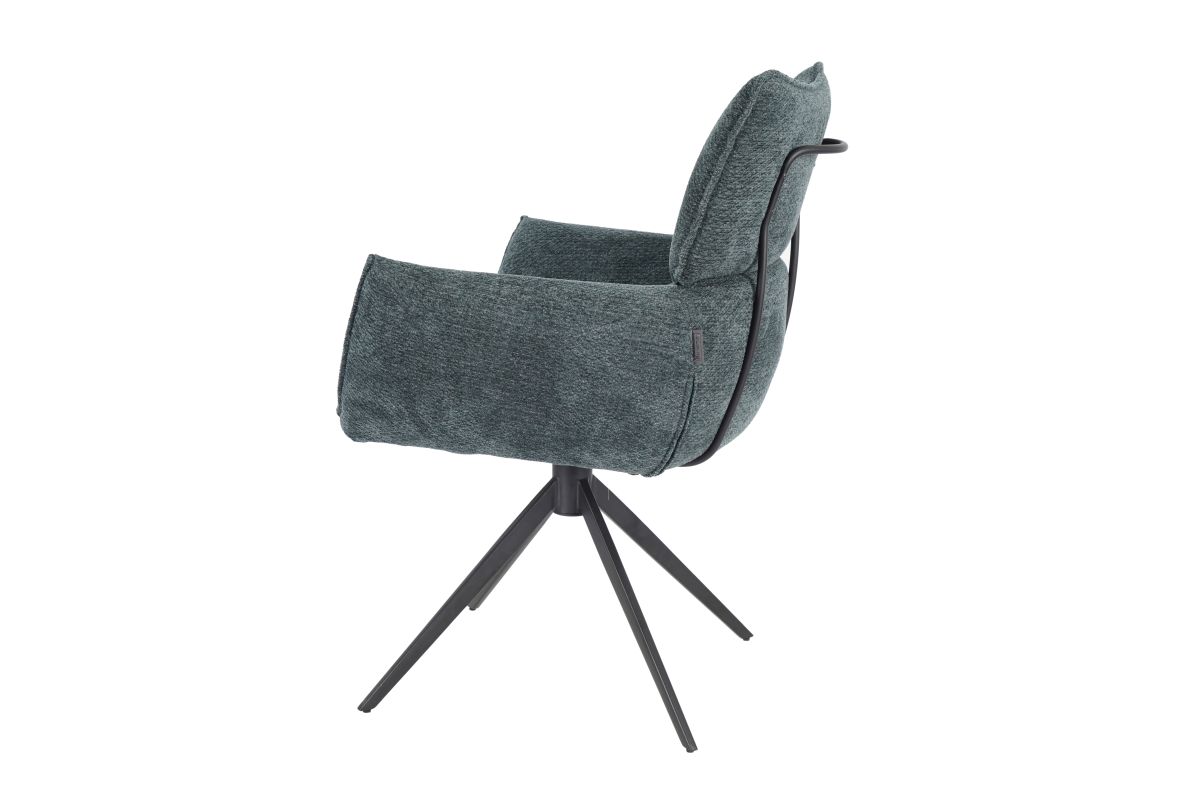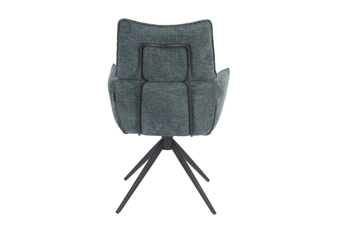 Sitzkomfort und Optik 100%! Weicher Webstoff, leicht schräger Rücken mit Detail aus schwarzem Metall auf hinten und eine 360 Grad Drehfunktion.