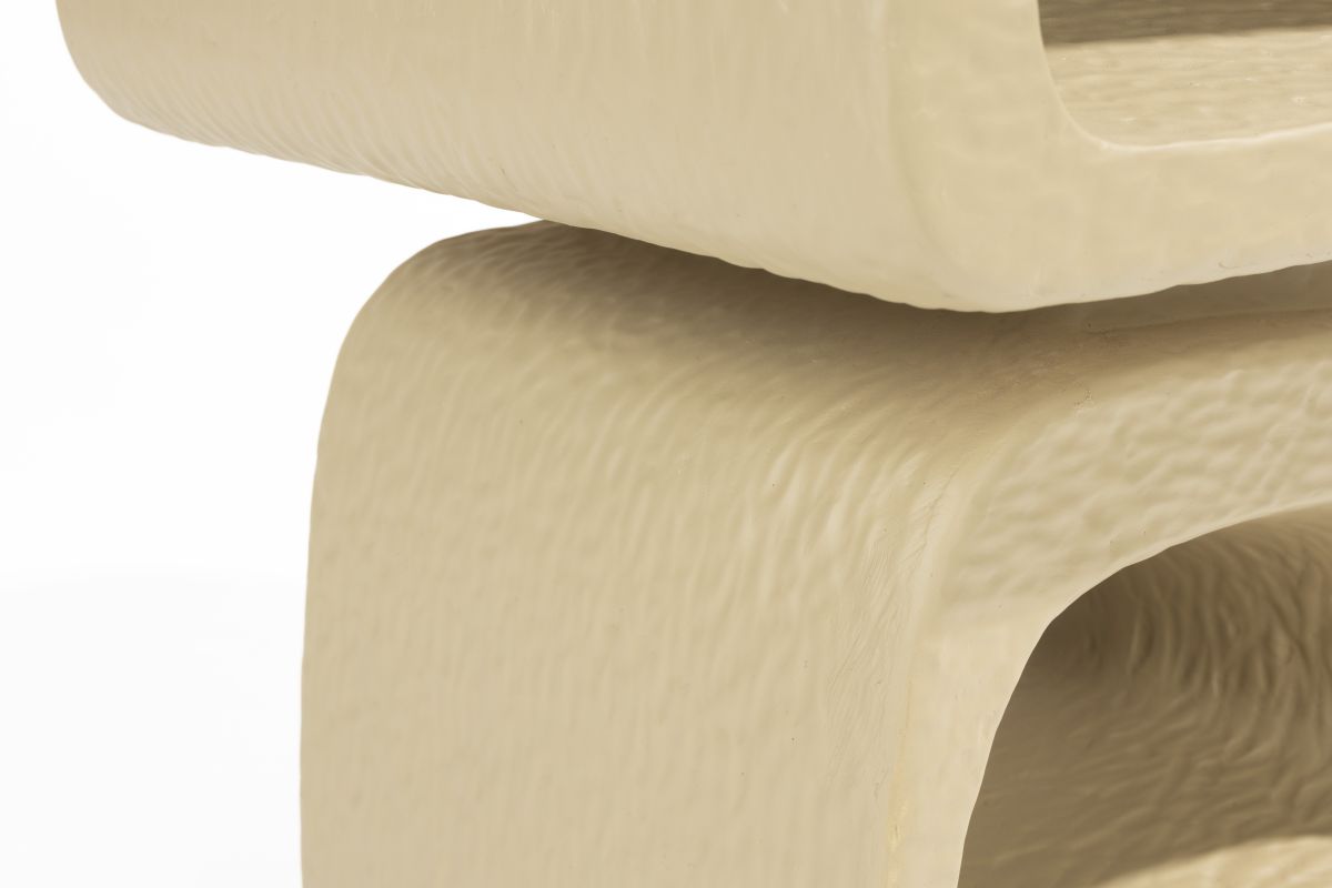 Der robuste Beistelltisch ZURI, in einem erdigen Beige-Ton, ist ein echter Hingucker für drinnen und draußen. Aber Achtung: ZURI mag keinen Regen, also am Abend wieder mit rein nehmen oder überdachen. Das pflegeleichte Harz, aus dem ZURI hergestellt wird, verleiht ihm eine besondere Bommelstruktur.