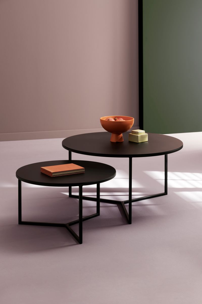Ideal in Kombination mit Couchtisch JOAN 3. Die schwarze pulverbeschichtete Metallplatte ist sehr robust. Am Besten mit lauwarmem Wasser und einem glatten Tuch reinigen.