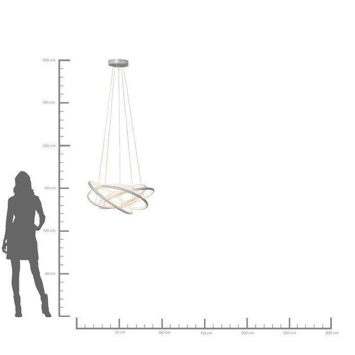 Hängeleuchte: Futuristisch und glamourös. Die aus Aluminium gefertigten, messingfarben lackierten Ringe verschmelzen optisch zu einem geheimnisvollen Ganzen. Die Innenseiten der Ringe sind mit LEDs versehen und lassen dieses moderne Leuchtobjekt faszinieren schimmern. Geeignet zur indirekten Beleuchtung, als Design-Highlight in Ihrer Wohnung und dem Büro. Die Lampe ist höhenverstellbar. Effizienzklasse G, 230 V, 50/60 Hz, mit Transformer, 12 V Gleichspannung, Leuchtmitteltyp LED, Anzahl Leuchtmittel 1, max. 75 Watt, Lumen 3500, Leuchtmittel inklusive, 75 KWh/1000h Lebensdauer 30000 h, Leuchtmittelfarbe in K 3000