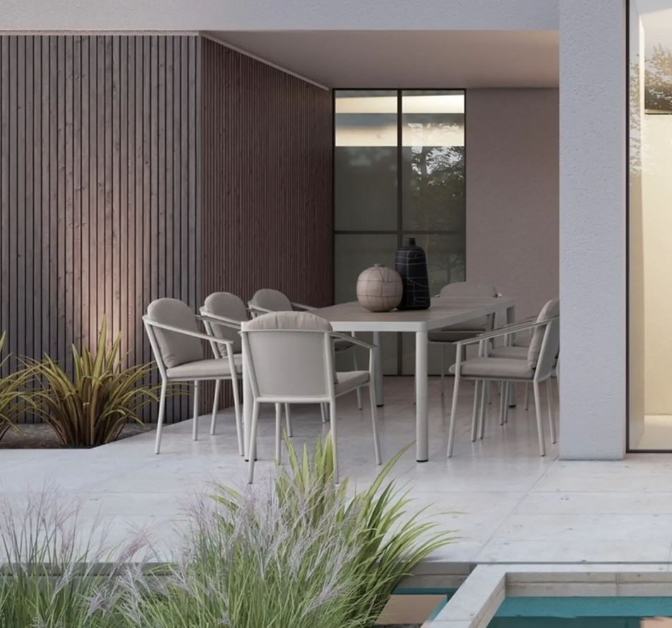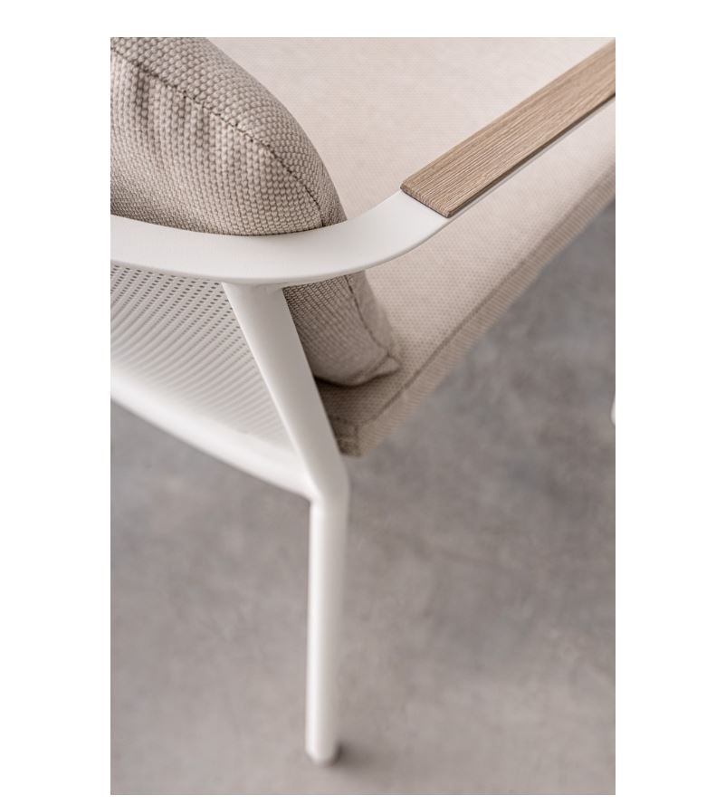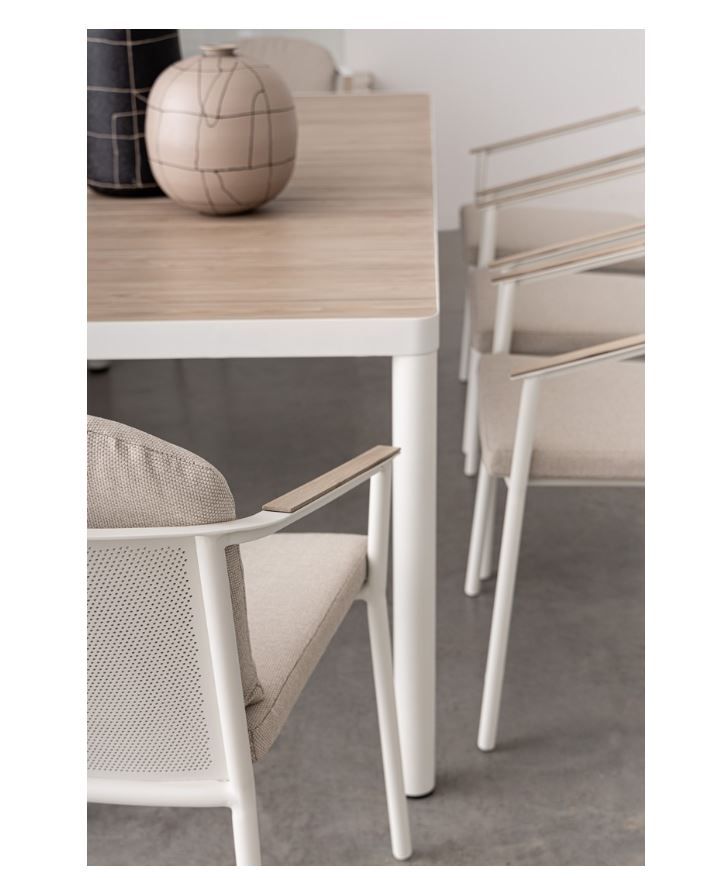 Tischplatte und Armlehnen aus Aluminium mit Holzoptik- Lackierung,